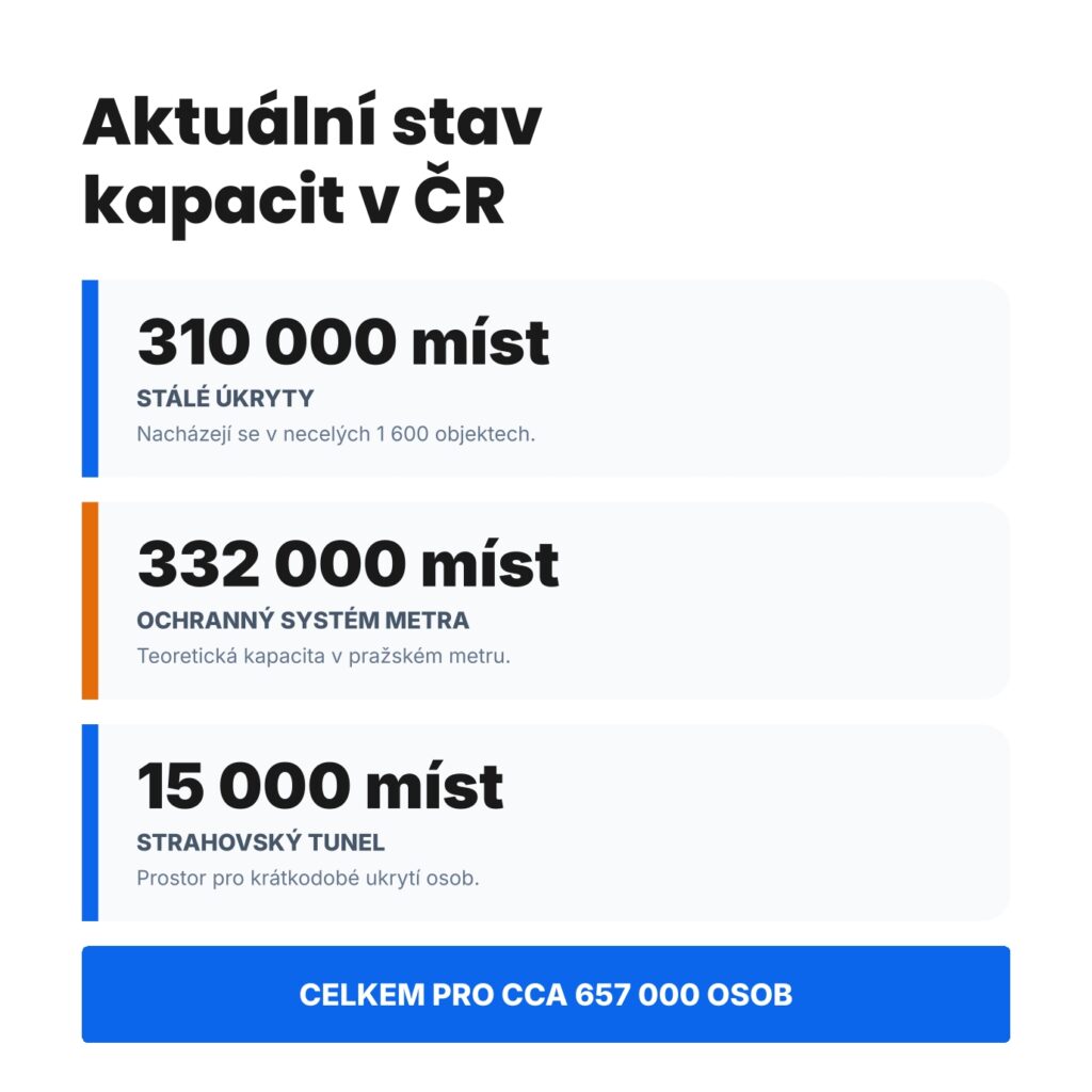 Kapacita úkrytů v ČR vs. realita dnešních hrozeb. Často se mluví o tom, že v Česku nemáme dostatek úkrytů. Je to pravda? Čísla mluví jasně, ale odpověď není tak černobílá, jak se zdá.