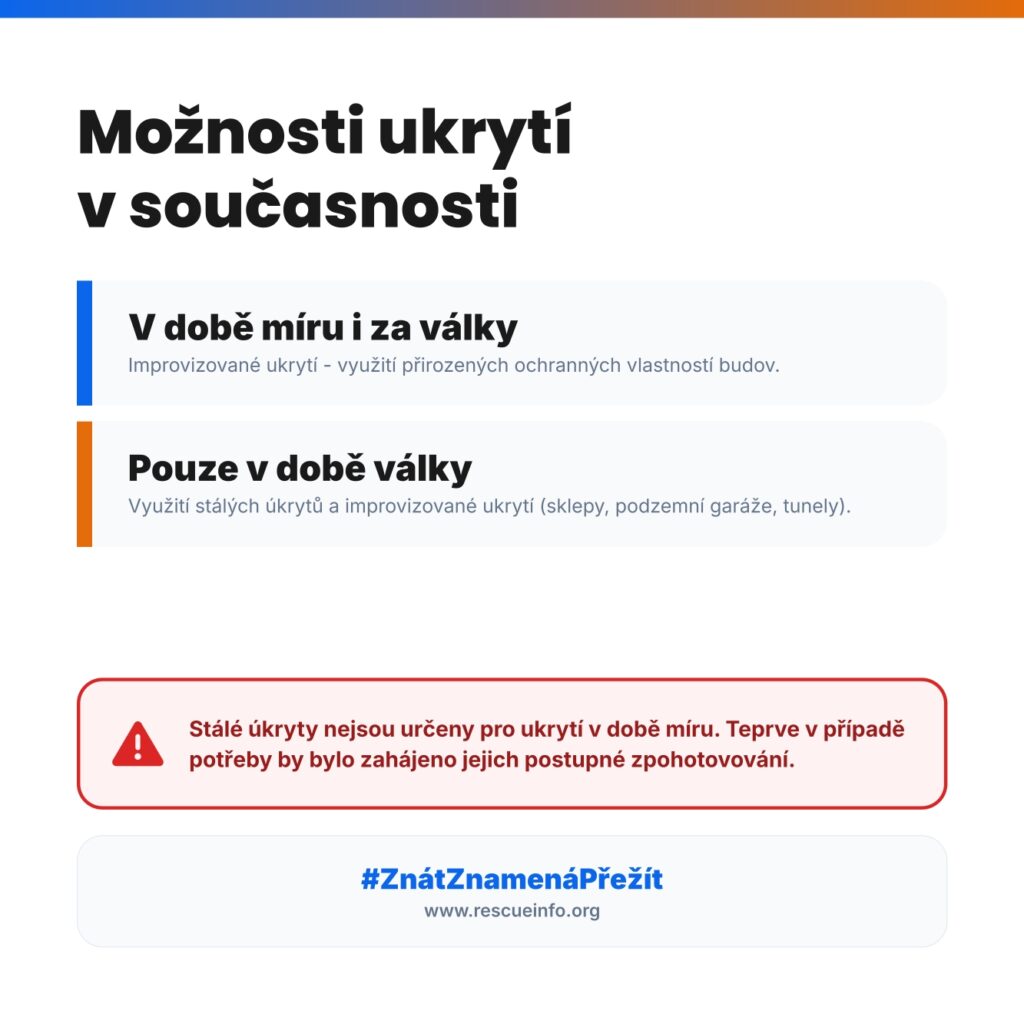Důležité varování: Stálé úkryty NEJSOU připraveny k okamžitému vstupu vteřinu po zaznění sirény!